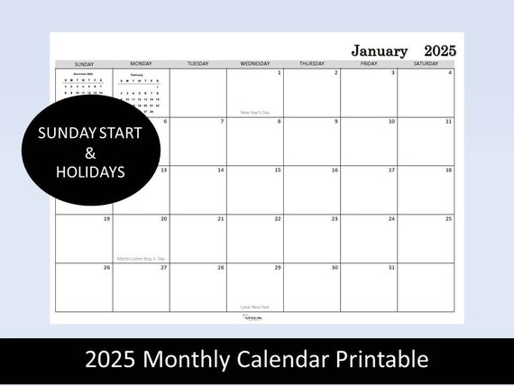 free printable 2025 monthly calendar with holidays