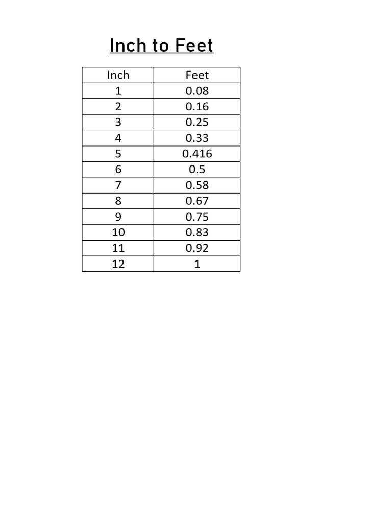 inch to feet chart