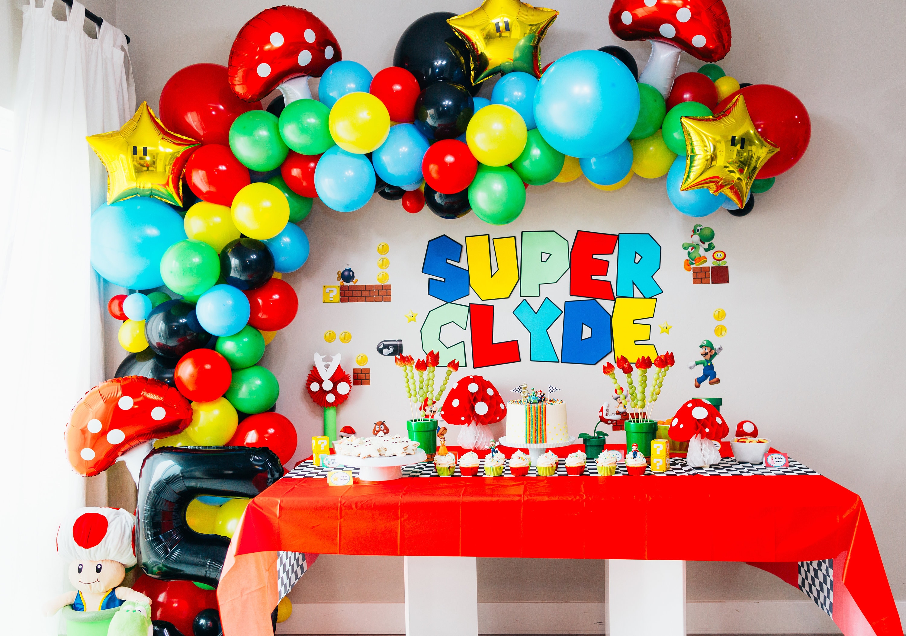 Mario Kart decorations are themed party or event accessories inspired by the popular Nintendo racing game, featuring iconic characters, vibrant color schemes, checkered flags, and track-inspired elements to create an immersive and exciting atmosphere for fans of all ages.