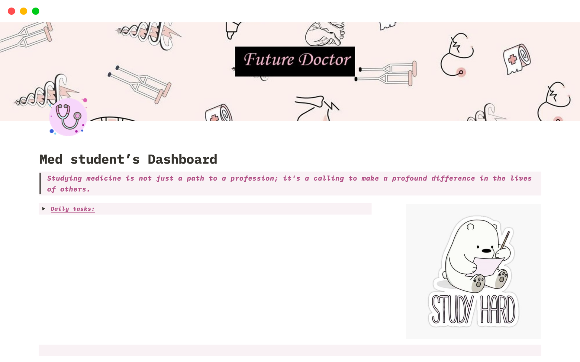 A med school Notion template is a customizable digital workspace designed to help medical students efficiently organize their coursework, study schedules, clinical rotations, and exam preparation all in one structured and visually clear platform.