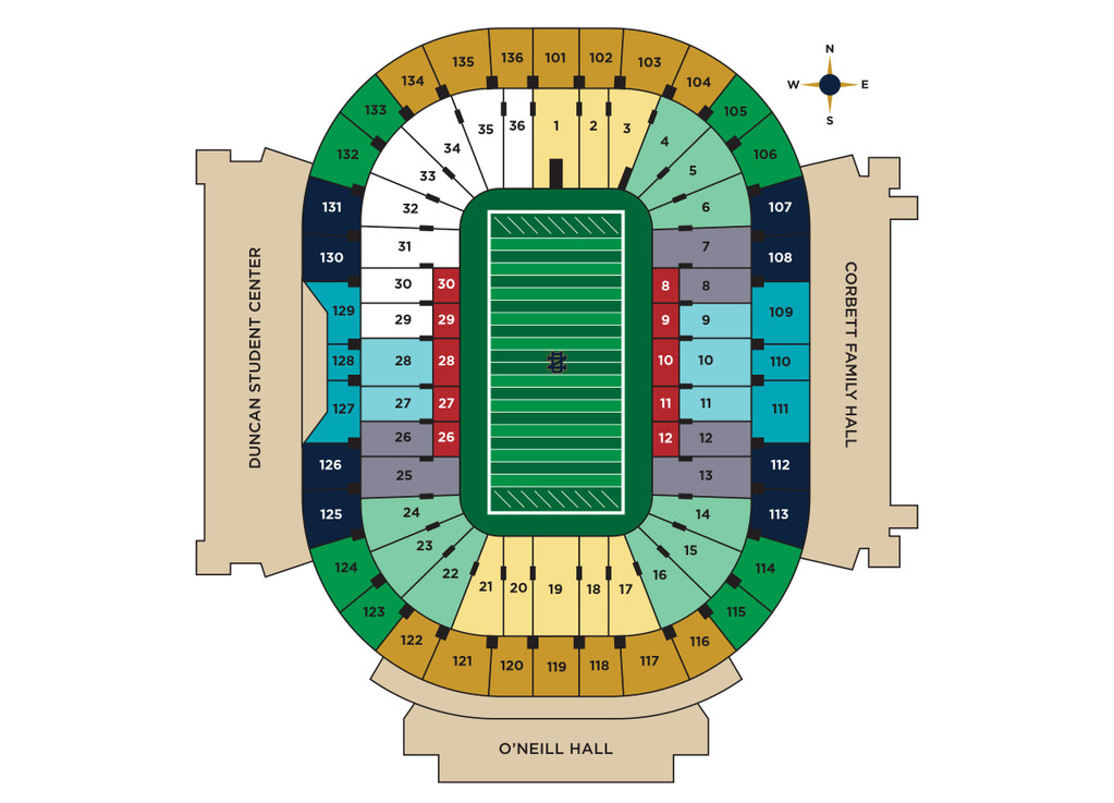 The Notre Dame seating chart provides a detailed layout of Notre Dame Stadium, helping fans locate sections, rows, and seat numbers to choose the best view for their football experience.