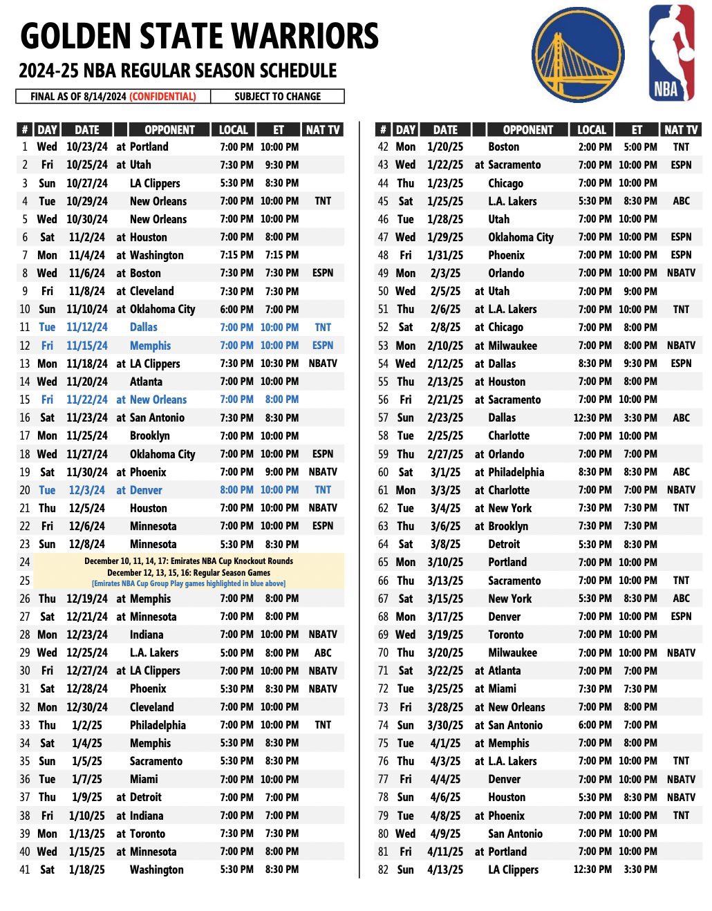 Stay ahead of every Golden State Warriors game this season with the complete 2024-25 printable schedule, featuring all dates, opponents, and venues for easy planning and quick reference.